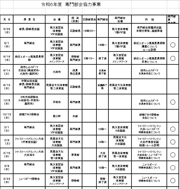 2024年度(令和6年度)専門部会の日程表です。
